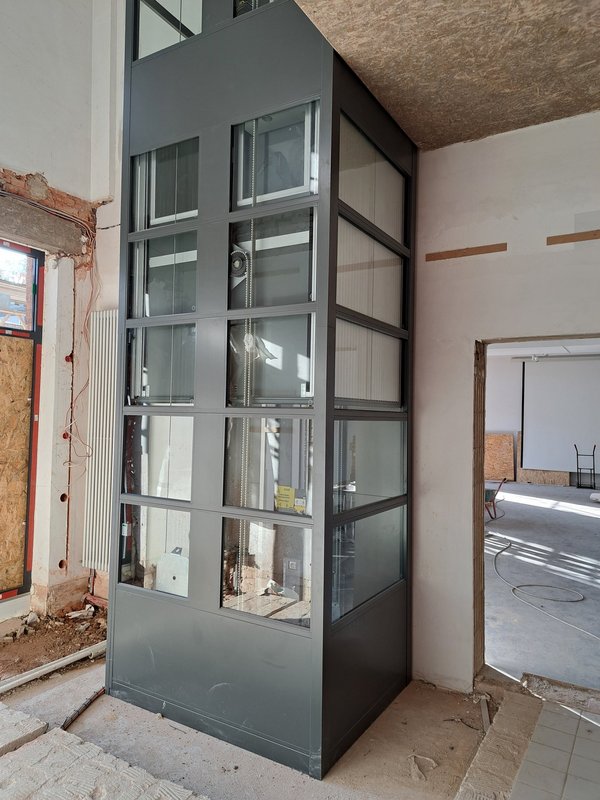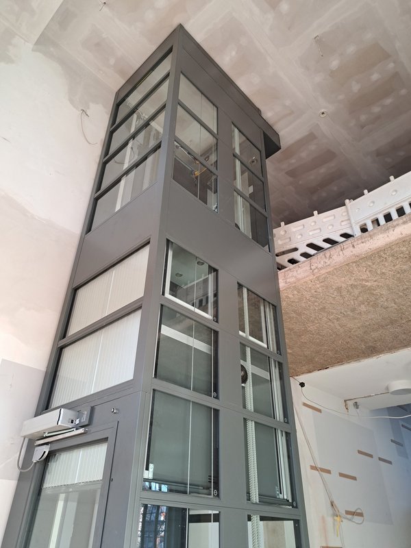Am 18.02.2026 wurde der Aufzug von der Firma KONE montiert. Die Türen wurden von der Firma Metallbau Neumann eingebaut.