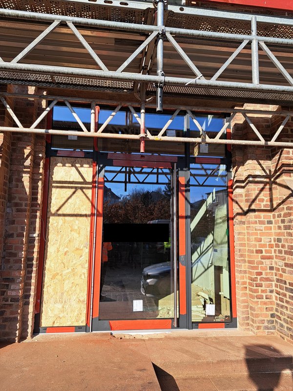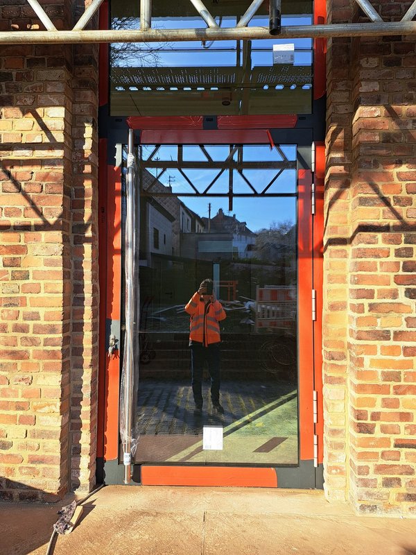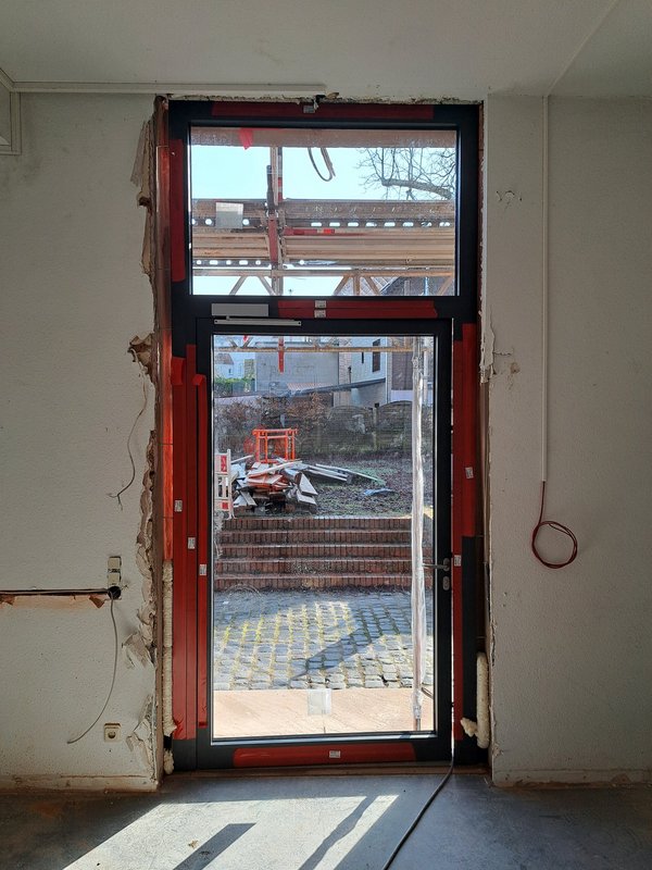 Am 5. März 2025 hat die Firma “Maler-Meisterbetrieb Joerg Krumm” aus Friedrichsthal offiziell mit den Umbauarbeiten begonnen. Zunächst wird im Rahmen der Arbeits- und Gesundheitsschutzmaßnahmen der Eingangsbereich abgeschottet und es werden Abbrucharbeiten (Trockenbauwand) durchgeführt sowie der Ausbau und die Entsorgung KMF-haltiger Dämmung auf der abgehängten Gipskartondecke.