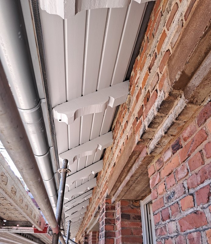 Am 09.03.2026 hat die Malerfirma De Mola aus Püttlingen begonnen, den Dachüberstand und die Fenster zu streichen.